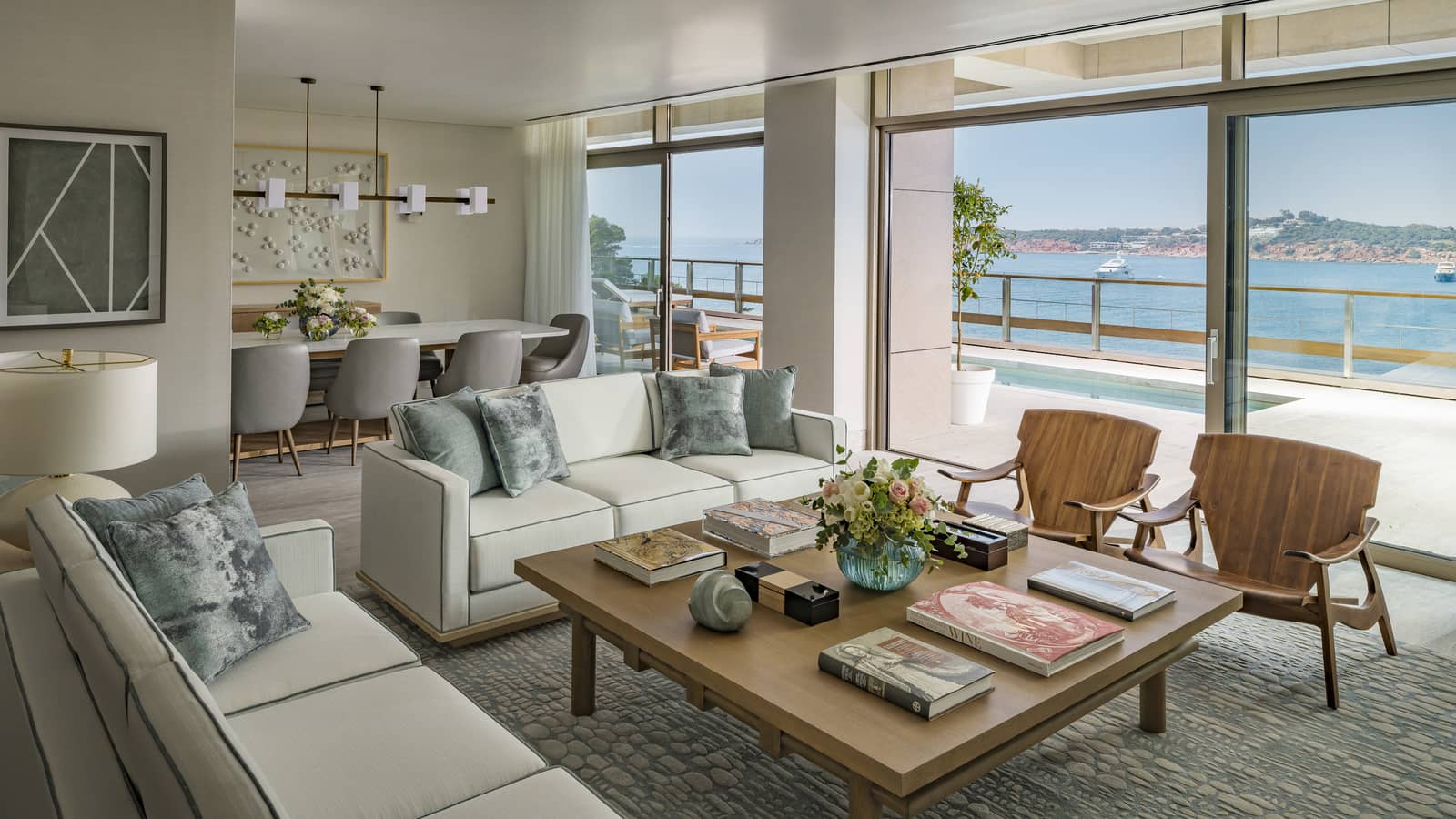 Many rooms have sea views, and some include private pools.